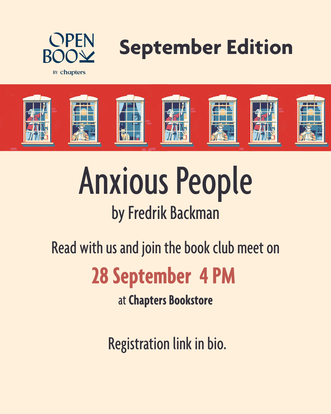 This month we’re reading Anxious People by Fredrik Backman — a witty, heartwarming novel about a failed bank robbery, unlikely friendships, and the anxieties we all share. Join us for a cozy discussion with fellow readers over coffee.